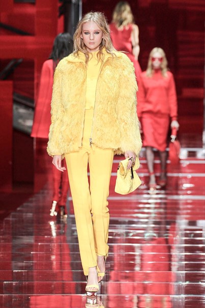 A Donatella no seu desfile apostou mais em cores chamativas, do que propriamente mais sóbrias como as que vos falo, mas para vos mostrar o amarelo, achei este look amarelo total, lindo!